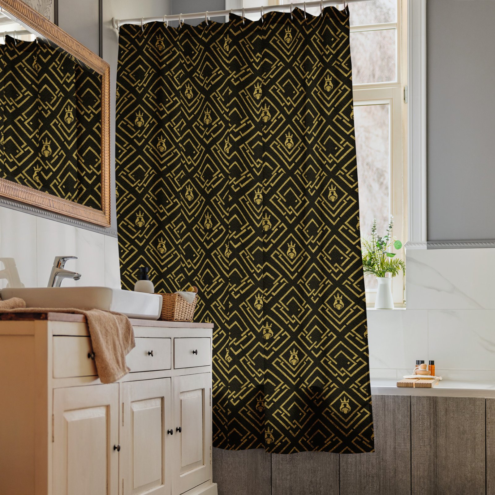 DaKahree Royal Labyrinth – Shower curtain – Black & Gold